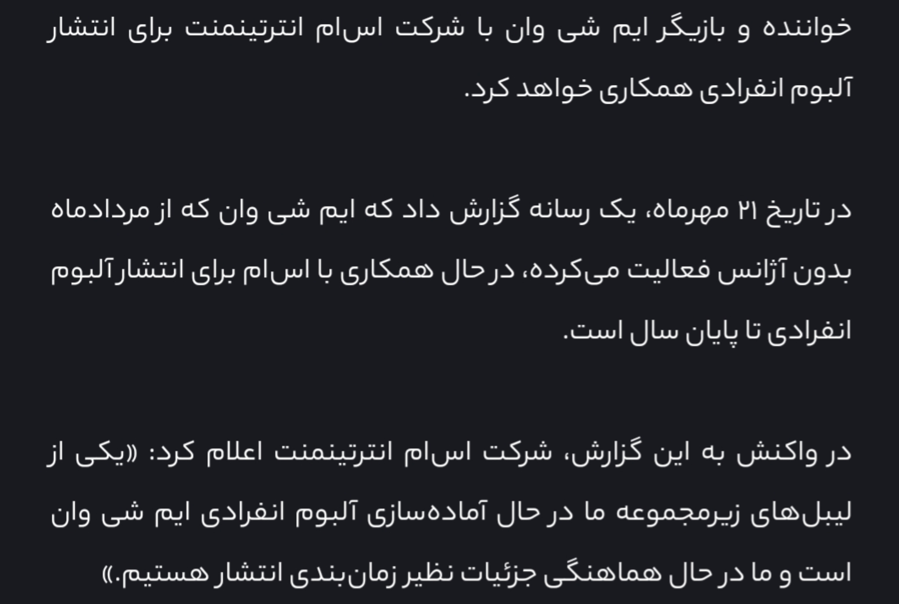 ۵.ایم شیوان جونم با شرکت است ام اینترتیمنت برای انتشار آلبوم انفرادیش همکاری میکنه🥹