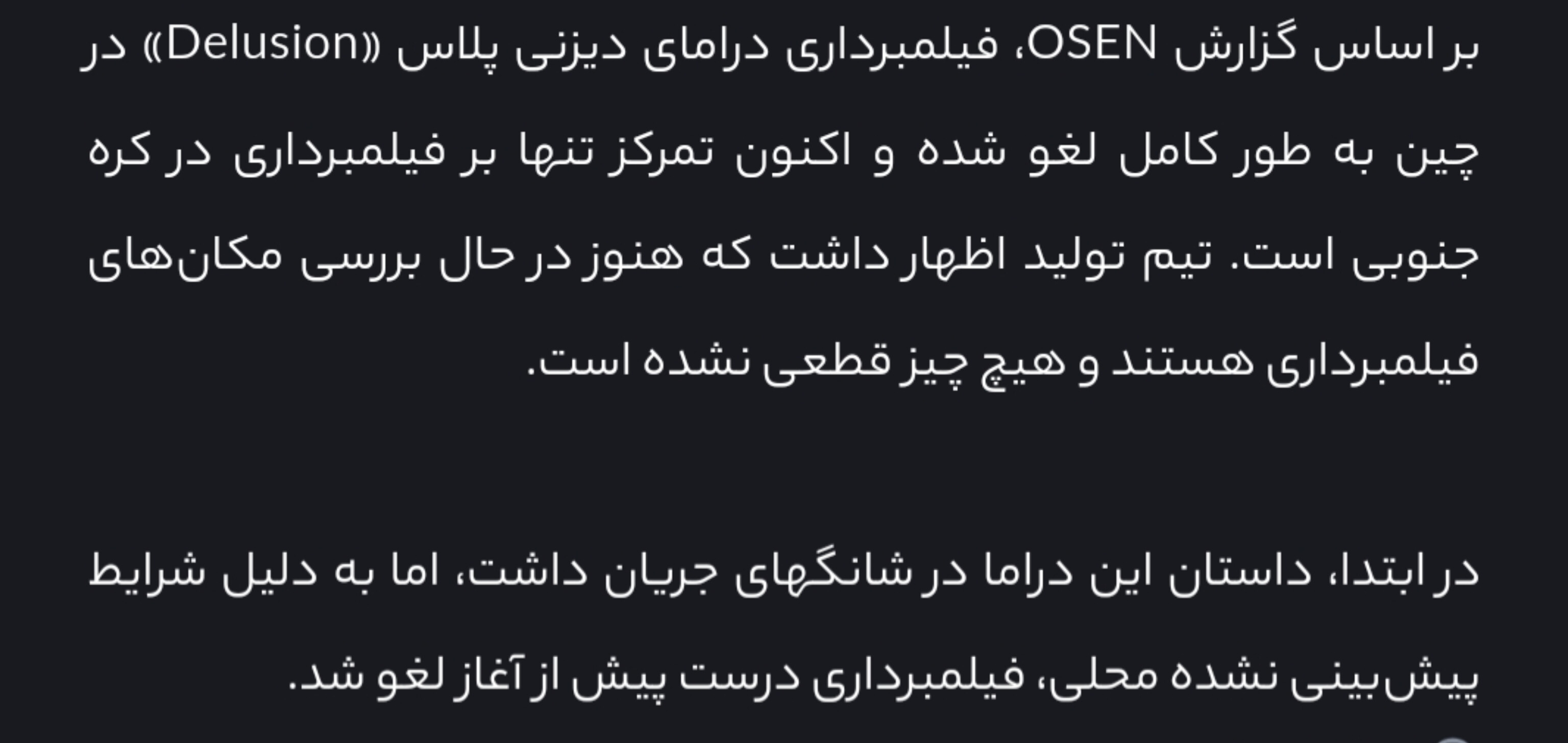 ۲.فیلمبرداری سریال dolusion در چین به طور کامل لغو شد...😭😭