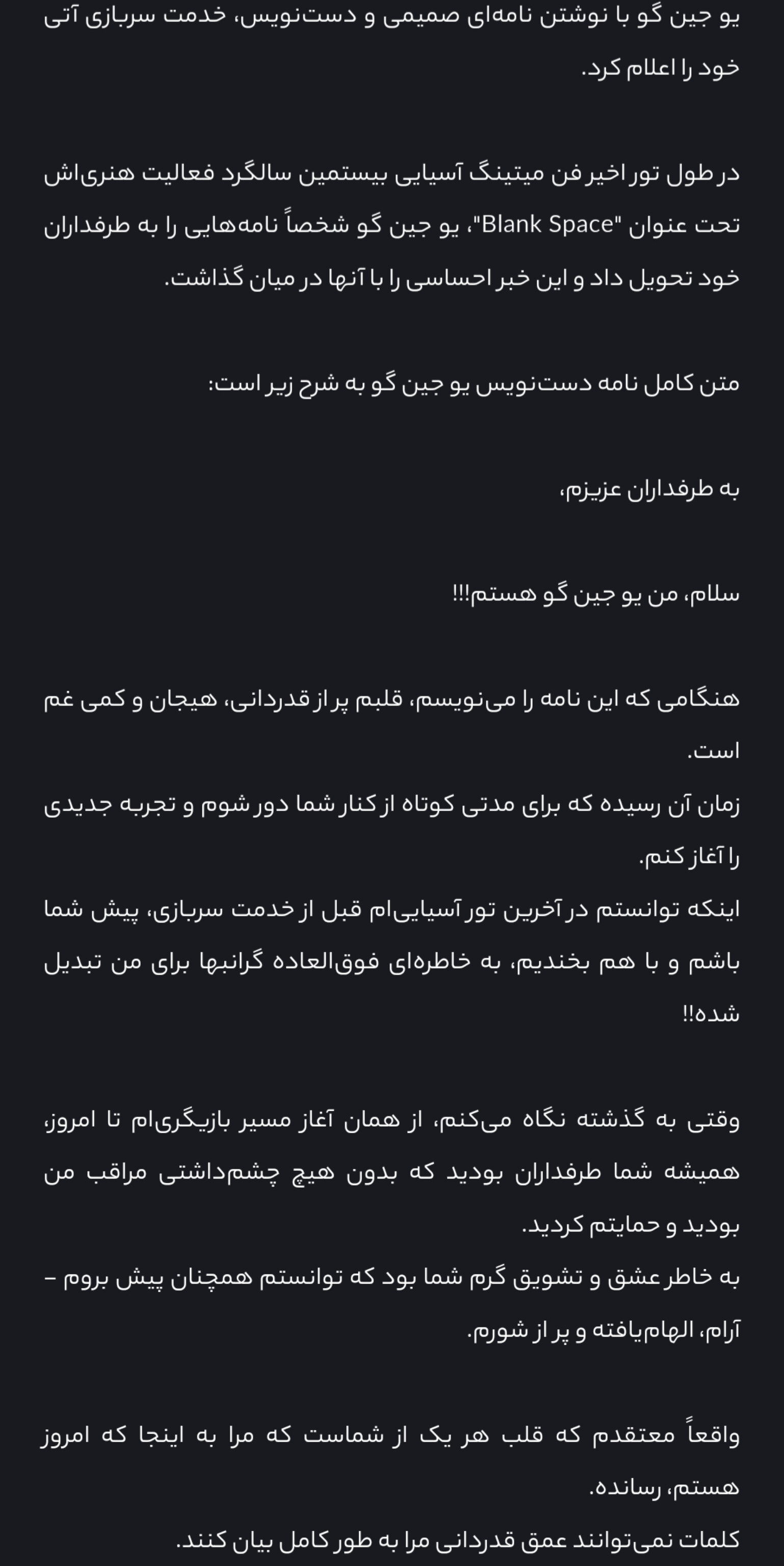 ۸.یو جین گو با نامه ی دست نویس خبر سربازی رفتن شو با طرفدارانش به اشتراک گذاشت😭😭